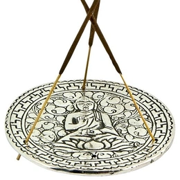 Transform your living space into a haven of tranquility with the MOI Incense Burner by Mehak of India. Inspired by Tibetan craftsmanship, this stunning aluminum incense burner is designed to elevate your aromatherapy sessions and enhance your home ambiance. Featuring an aged silver finish and a compact 4.5" diameter, it effortlessly combines practicality with artistic beauty.